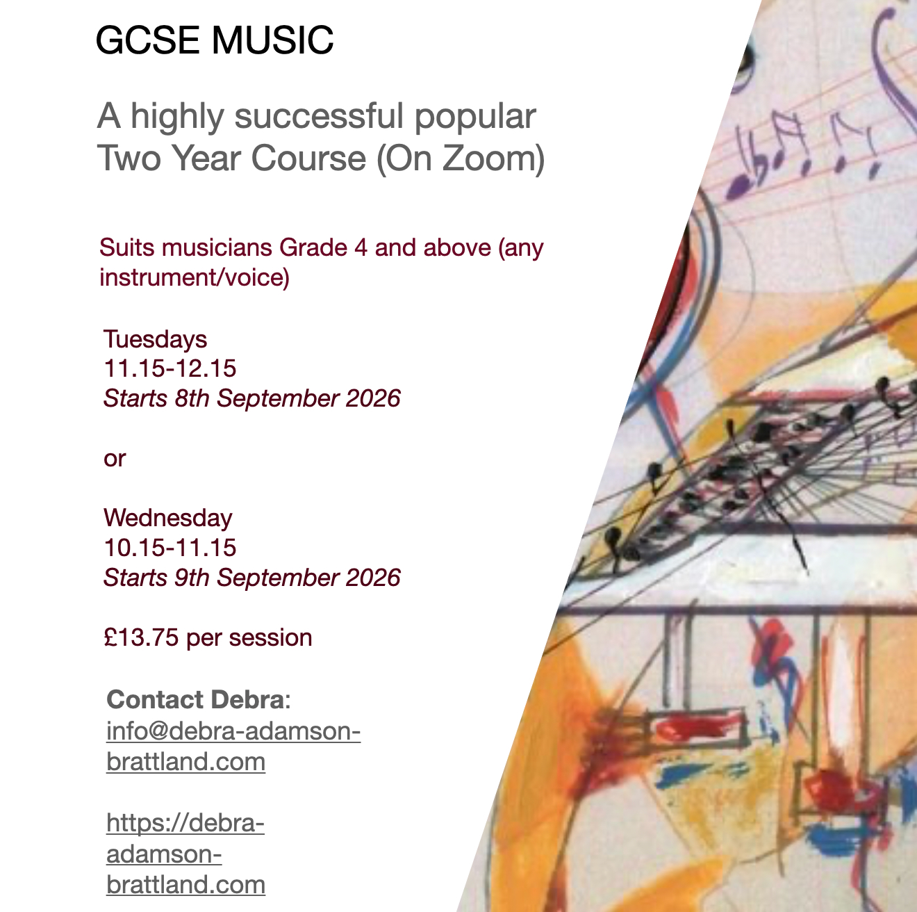 Two Year Online Zoom class suits musicians Grade 4+. £13.75 per hour (1 hour a week)